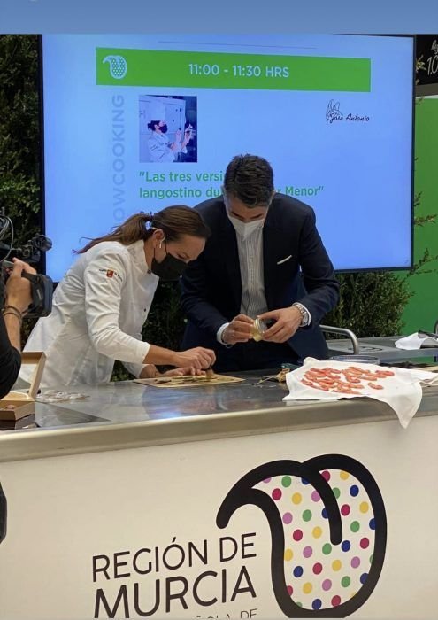 Showcooking con nuestros bombones gourmets: el cangrejo autóctono del Mar Menor (la cranca), los caballitos de Mar, las tres versiones de los langostinos y el plátano solidario con los damnificados por el volcán de La Palma